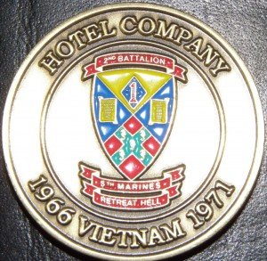 Hotel Company was one of four combat companies attached to the 2nd Battalion, 5th Marine Regiment, 1st Marine Division while serving in Vietnam. Others included Echo Company, Foxtrot Company, Golf Company, H&S Company, and Weapons Company.