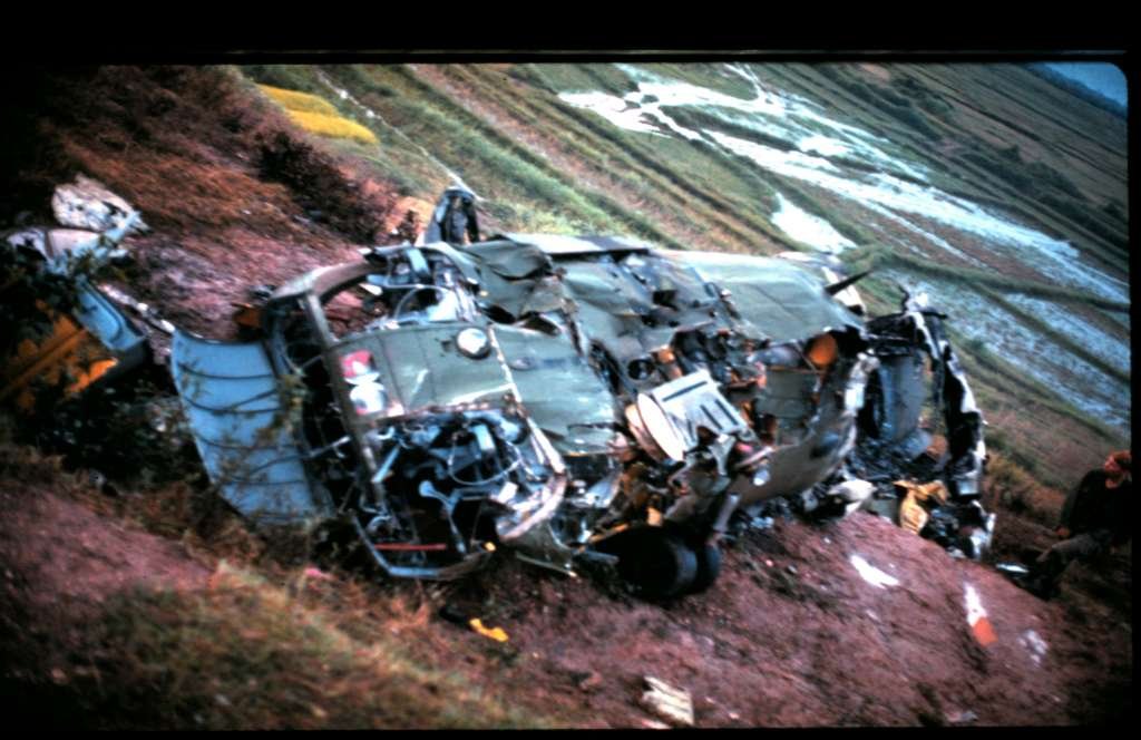 (The LZ was located about 6 to 10 feet above the rice paddy on solid ground.) Seconds later, we heard a large crash on the LZ. I grabbed my flak jacket and helmet and began running towards the LZ while the CO began running behind me towards the LZ. I was concerned about the radioman on the LZ who was guiding the helo to land on the LZ. When I arrived, I saw the helo skidding upside down and came to a complete stop about halfway across the LZ still facing upside down. Then, while still running toward the helo, I saw a big explosion just after I saw a small Vietnamese boy get tossed out of the backend of the helicopter. I spotted the machine gunner/crewman climbing out of the upside down, side window. He ran to tend to the boy who was tossed out. I immediately moved to the front of the helo and began unstrapping the pilot from his seat. The pilot must have misjudged the height of the LZ. He plowed into the side of the LZ hill and then flipped over, nose first upside down.
