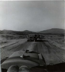 I can recall going on three drives with the CO to Da Nang, each time driving in a convoy for safety reasons. One trip was from Hill 65 to Da Nang, another from Hill 65 to An Hoa, another from An Hoa to Da Nang, twice. Each time driving in a convoy. Although those trips were less than 20 miles one way, it would take many hours traveling at very slow speeds due to the mine sweeps and occasionally having contact with the enemy. Some of the convoys would have up to 20 to 40 vehicles in them. There would be Marines walking on the flanks of the dirt road, tanks and armored vehicles stationed on the front and the back of each convoy.