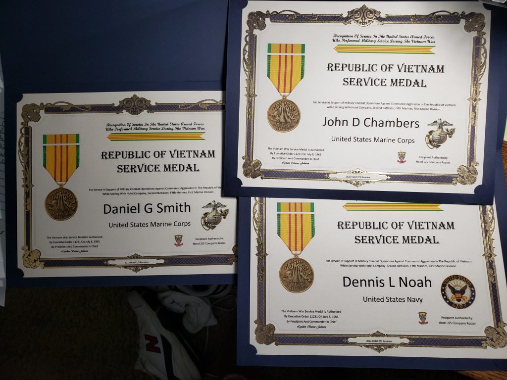 News Flash: Hotel 2/5 Vietnam Veterans receive Republic of Vietnam Medal & Certificate at 2022 Dayton Reunion